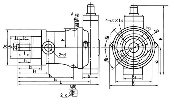 例如:已知某一机器的工艺特性要求泵的最大压力为Pmax,在Pmax时D1点的流量为Q1,泵在低压时的流量为Qmax,则泵在A1点的压力为: